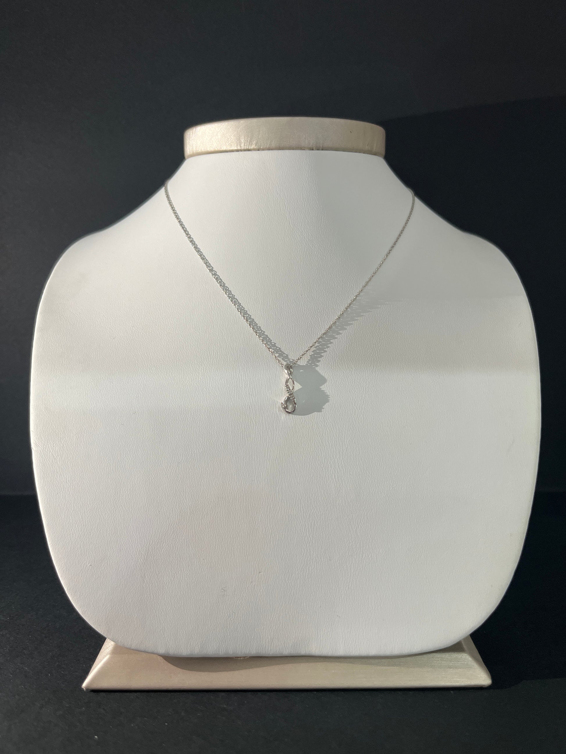 Stile: catenina girocollo con pendente fantasia in oro bianco impreziosito da diamanti.