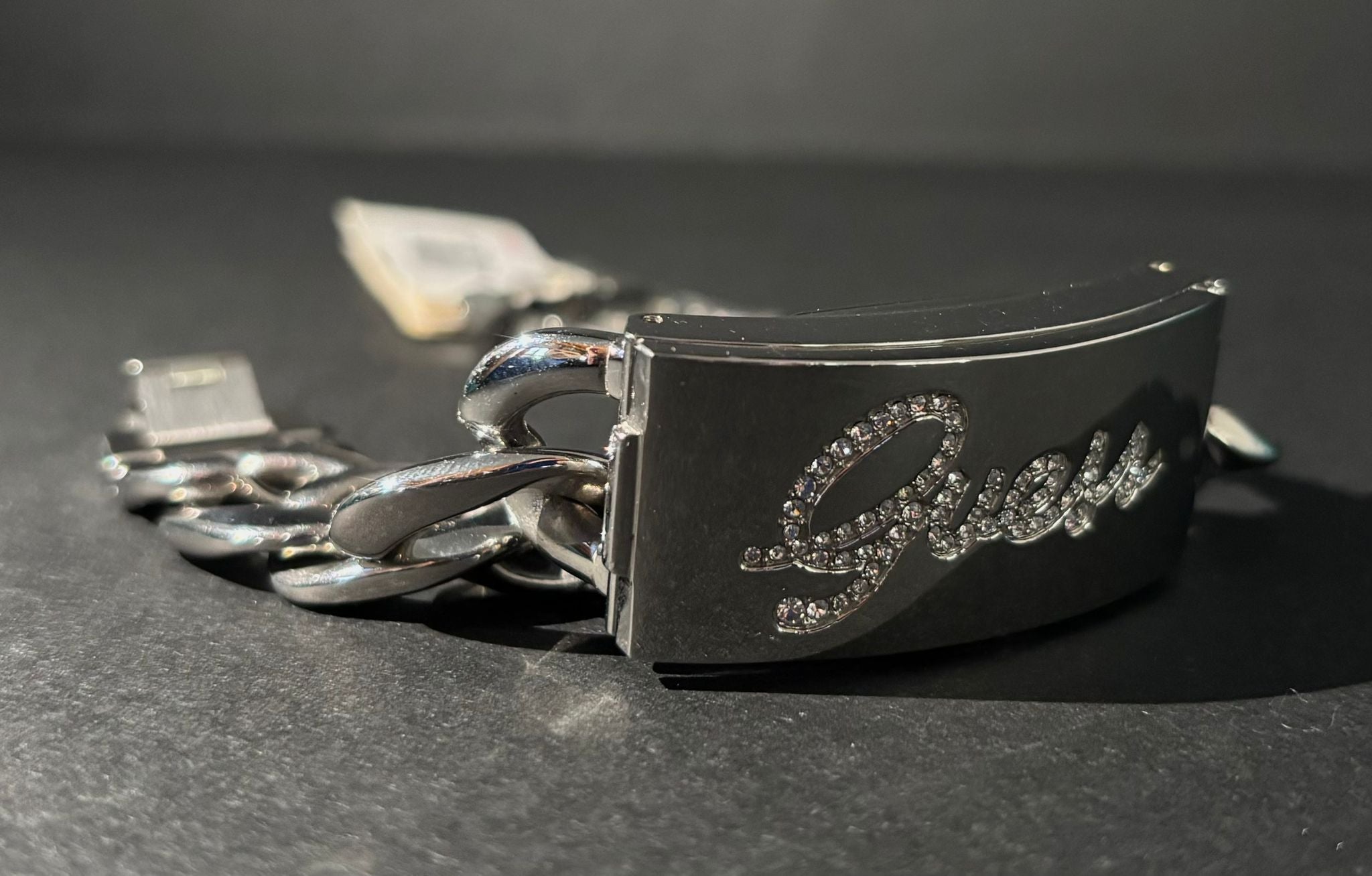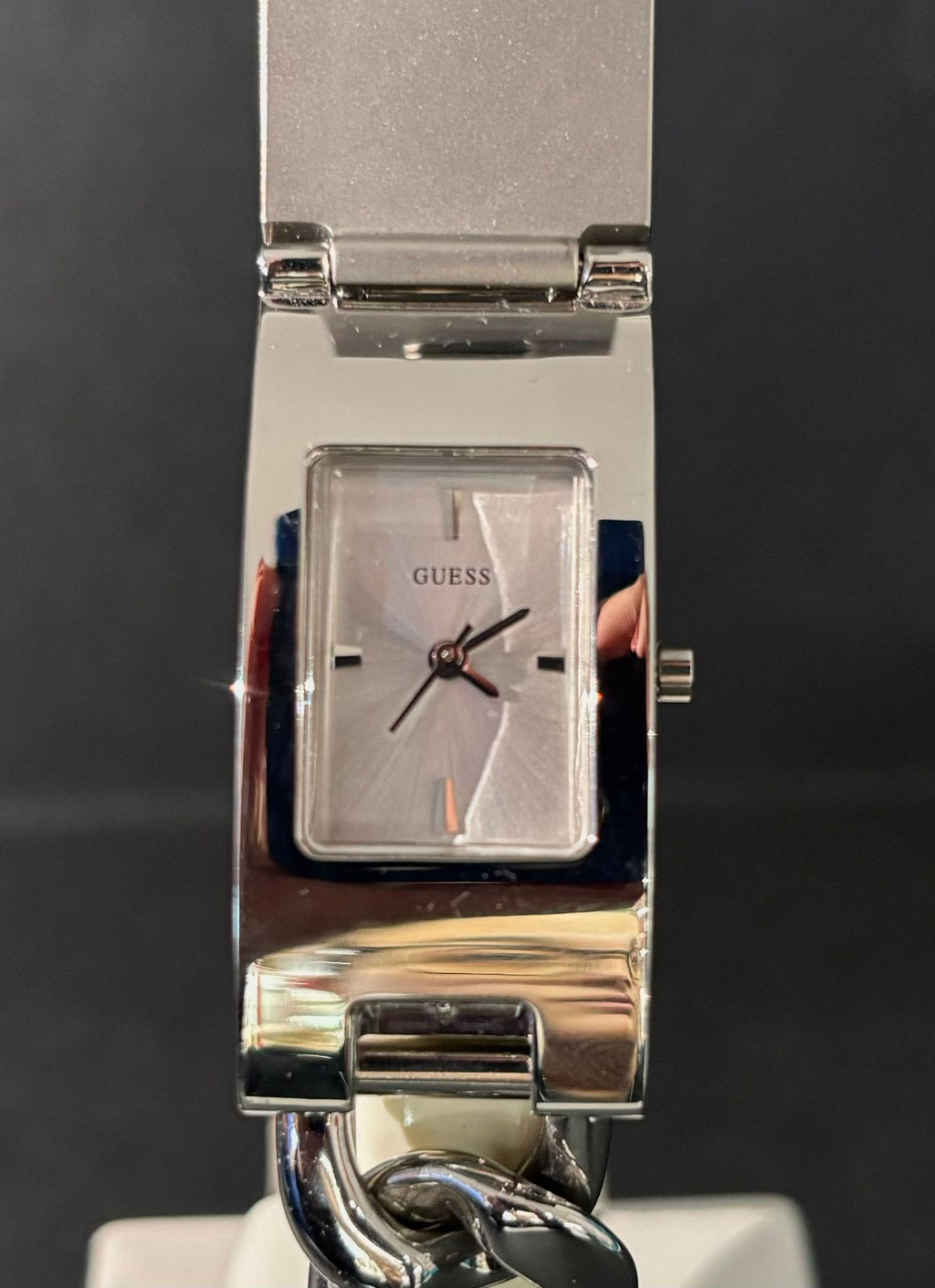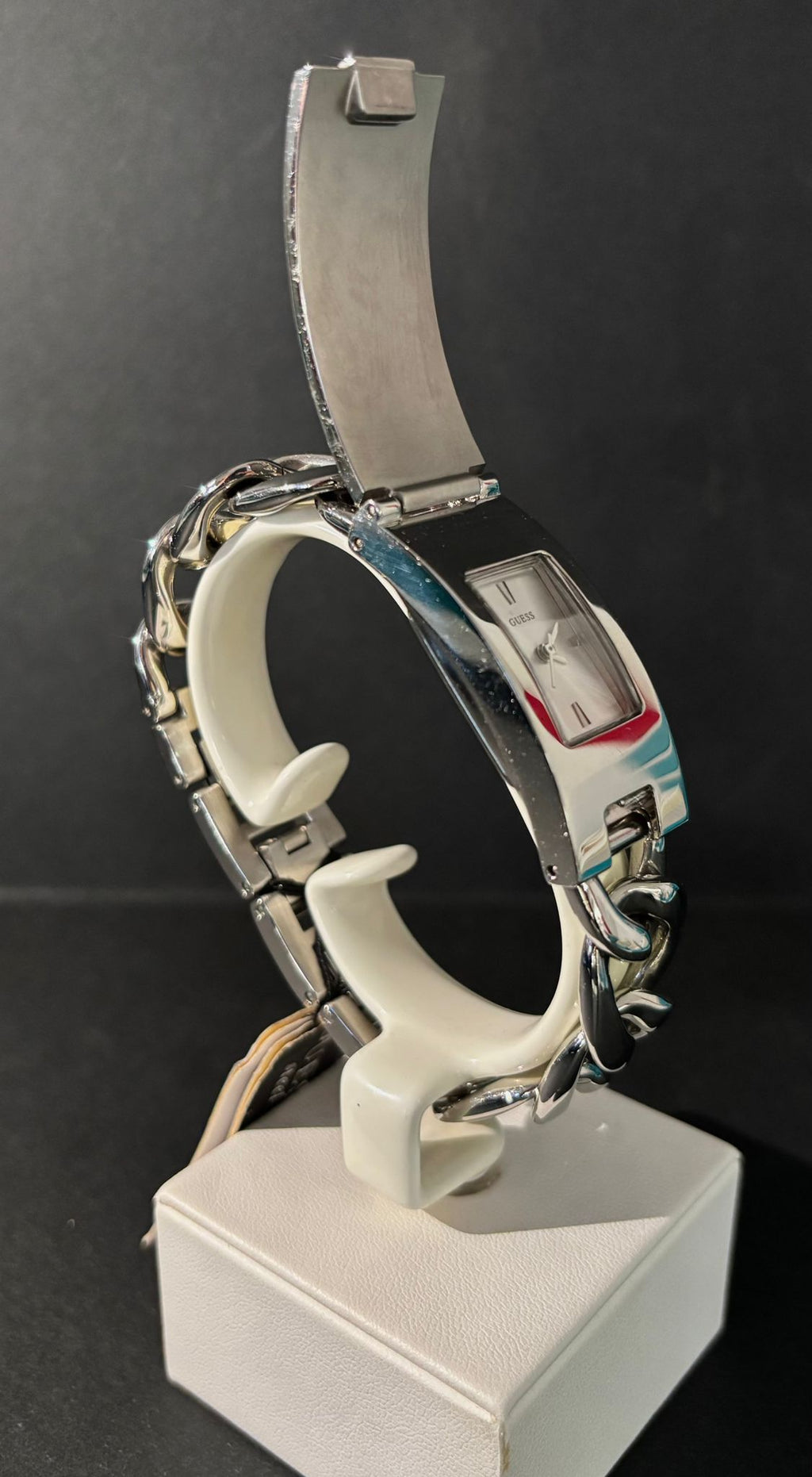 Orologio da polso femminile Guess W0321L1, Collezione POP ICON, orologio guess con movimento al quarzo solo tempo, cassa (19x42 mm) in acciaio lucido con logo in cristalli, quadrante silver, bracciale a catena in acciaio lucido, chiusura g-link, resistenza all'acqua fino a 30 mt.